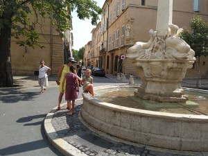 The fountains, for which Aix is famous, reflect this new reality. In many the usual welcoming sprays are reduced to a trickle. An exception is the most famous fountain, the Fontaine de Quatre Dauphins, on rue Cardinale. After a recent renovation, it is gushing with water from the mouths of its Four Dolphins, and residents are taking advantage of it by plunging in.